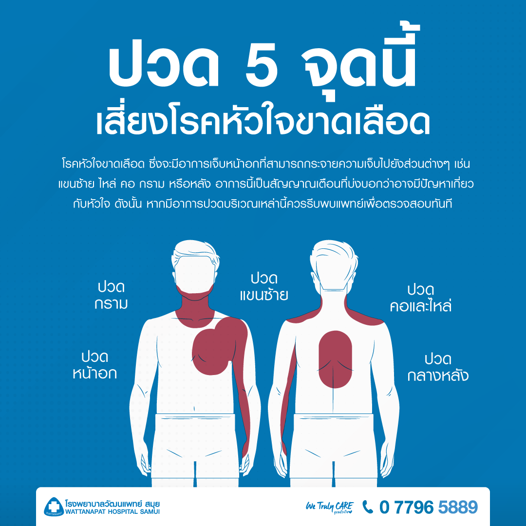 การปวดที่เกี่ยวข้องกับโรคหัวใจขาดเลือดอาจไม่ได้แสดงออกเฉพาะที่หัวใจ แต่สามารถแสดงในรูปแบบของ Referred Pain บริเวณอื่นๆ เช่น กราม แขนซ้าย หลังส่วนบน คอ หรือไหล่ การรู้จักสัญญาณเตือนเหล่านี้ช่วยให้คุณสามารถรับรู้และป้องกันโรคได้ทันท่วงที หากคุณมีอาการที่ตรงกับลักษณะเหล่านี้ ควรพบแพทย์เพื่อตรวจวินิจฉัยอย่างละเอียดและรับการรักษาให้ถูกต้อง