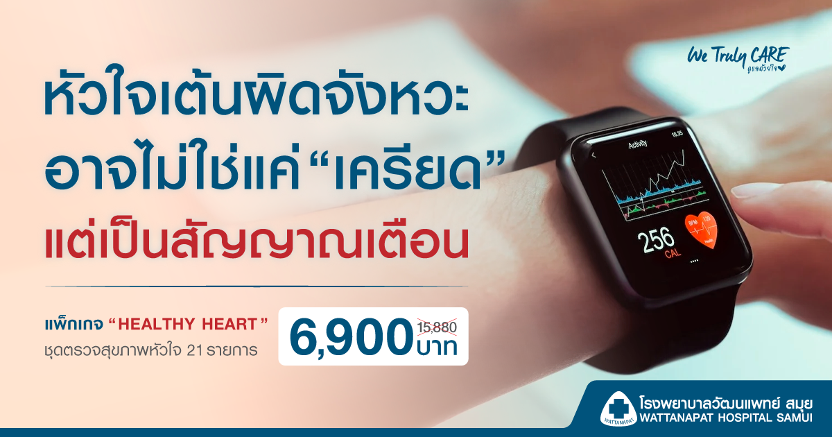 หัวใจเต้นผิดจังหวะอาจเกิดจาก “แค่เครียด” ก็จริง แต่ก็อาจเป็น “สัญญาณเตือนโรคหัวใจอันตราย” ได้เช่นกัน หากมีอาการบ่อยครั้ง หรือร่วมกับเหนื่อย แน่นหน้าอก เวียนศีรษะ ควรเข้ารับการตรวจทันที เพื่อป้องกันภาวะแทรกซ้อนที่อาจเกิดขึ้นในอนาคต