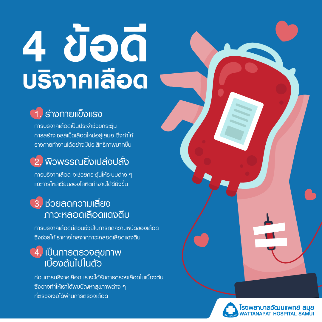 การบริจาคเลือดเป็นประจำช่วยกระตุ้นการสร้างเซลล์เม็ดเลือดใหม่อยู่เสมอ ซึ่งทำให้ร่างกายทำงานได้อย่างมีประสิทธิภาพมากขึ้น นอกจากนั้นการบริจาคเลือดยังเป็นการรักษาระดับธาตุเหล็ก ไม่ทำให้เราอยู่ในภาวะ “เหล็กเกิน” ที่ทำให้เกิดการสะสมธาตุเหล็กตามอวัยวะต่าง ๆ มากเกินไปเช่น ตับ หรือหัวใจ จนเป็นสาเหตุทำให้เกิดปัญหาสุขภาพเช่น โรคตับ โรคหัวใจ หรือโรคเบาหวาน