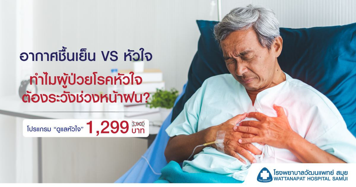 เมื่อฤดูฝนมาเยือน นอกจากร่มจะกลายเป็นของจำเป็นแล้ว สุขภาพหัวใจก็เป็นอีกสิ่งที่ไม่ควรมองข้าม โดยเฉพาะในผู้ป่วยโรคหัวใจ เพราะอากาศชื้นและเย็นที่มาพร้อมกับฝน อาจเป็นตัวกระตุ้นให้เกิดภาวะแทรกซ้อน หรืออาการกำเริบของโรคหัวใจได้อย่างไม่คาดคิด