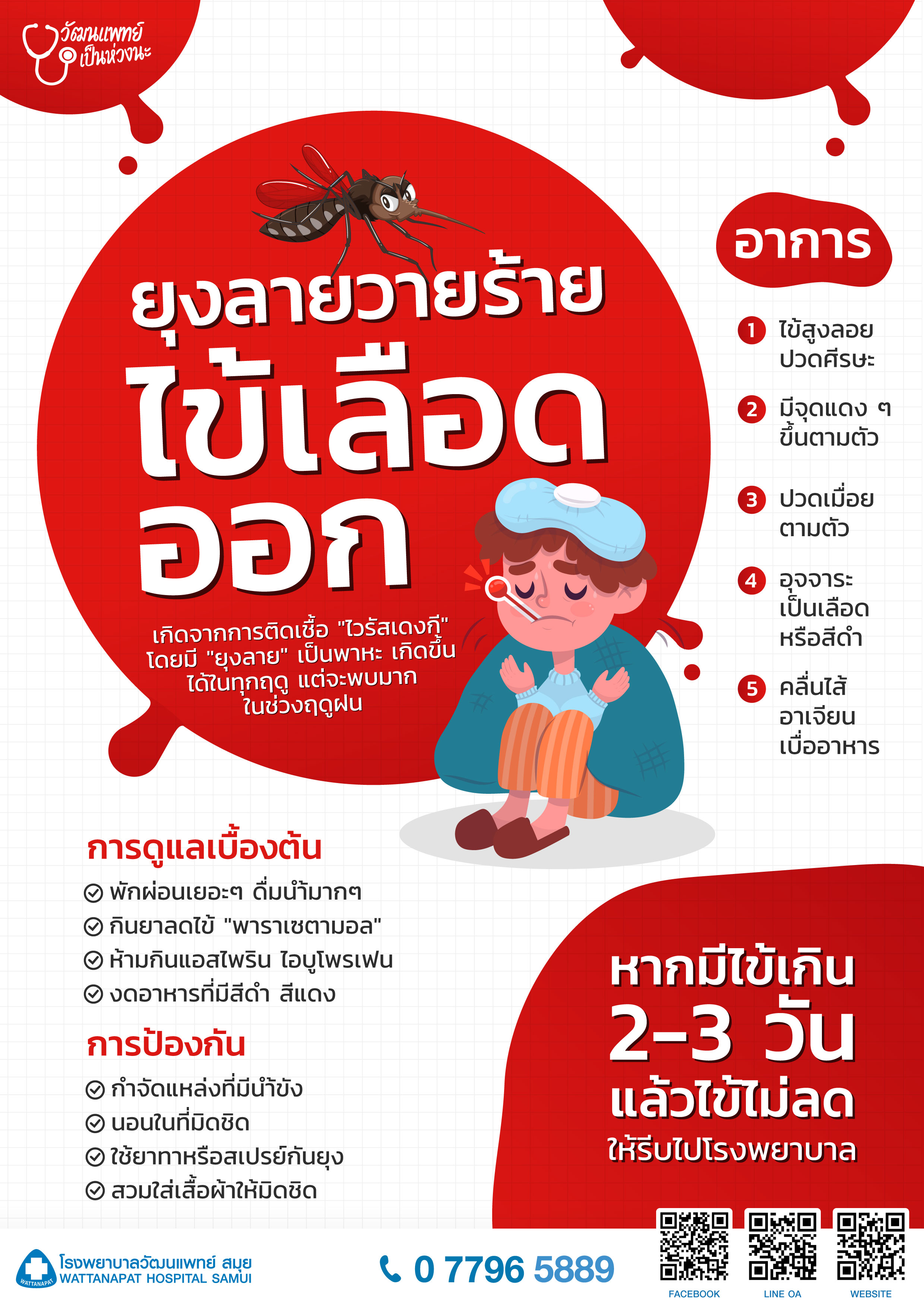 อาการสำคัญที่ควรสังเกตคือ ไข้สูงเฉียบพลันเกิน 38 องศาเซลเซียสประมาณ 2-7 วันติดต่อกัน โดยเฉพาะหากมีอาการปวดศีรษะรุนแรง ปวดเบ้าตา ปวดกล้ามเนื้อ หรือมีผื่นตามตัว การที่มีอาการเลือดออกง่ายเป็นอีกหนึ่งสัญญาณที่ควรระวัง เช่น เลือดออกตามเหงือก เลือดกำเดาไหลบ่อยๆ ควรรีบพาไปพบแพทย์ทันที