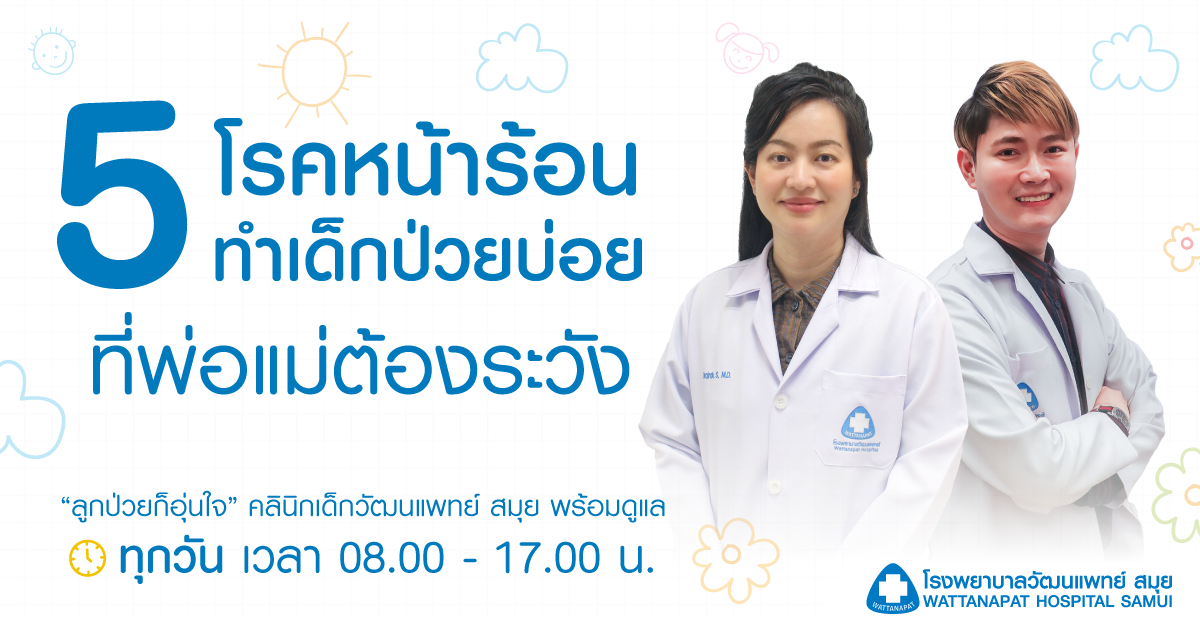 ช่วงหน้าร้อนแบบนี้ ตรงกับช่วงปิดเทอมใหญ่ของเด็กๆ สำหรับเด็กๆ อาจเป้นช่วงเวลาสุดสนุกที่จะได้ออกไปเล่น หรือทำกิจกรรมมากมายแต่ช่วงหน้าร้อนอย่างนี้มีโรคที่อันตรายมากๆ สำหรับเด็กๆ ทำให้พ่อแม่ต้องค่อยใส่ใจและระวังอยู่หลายโรค
