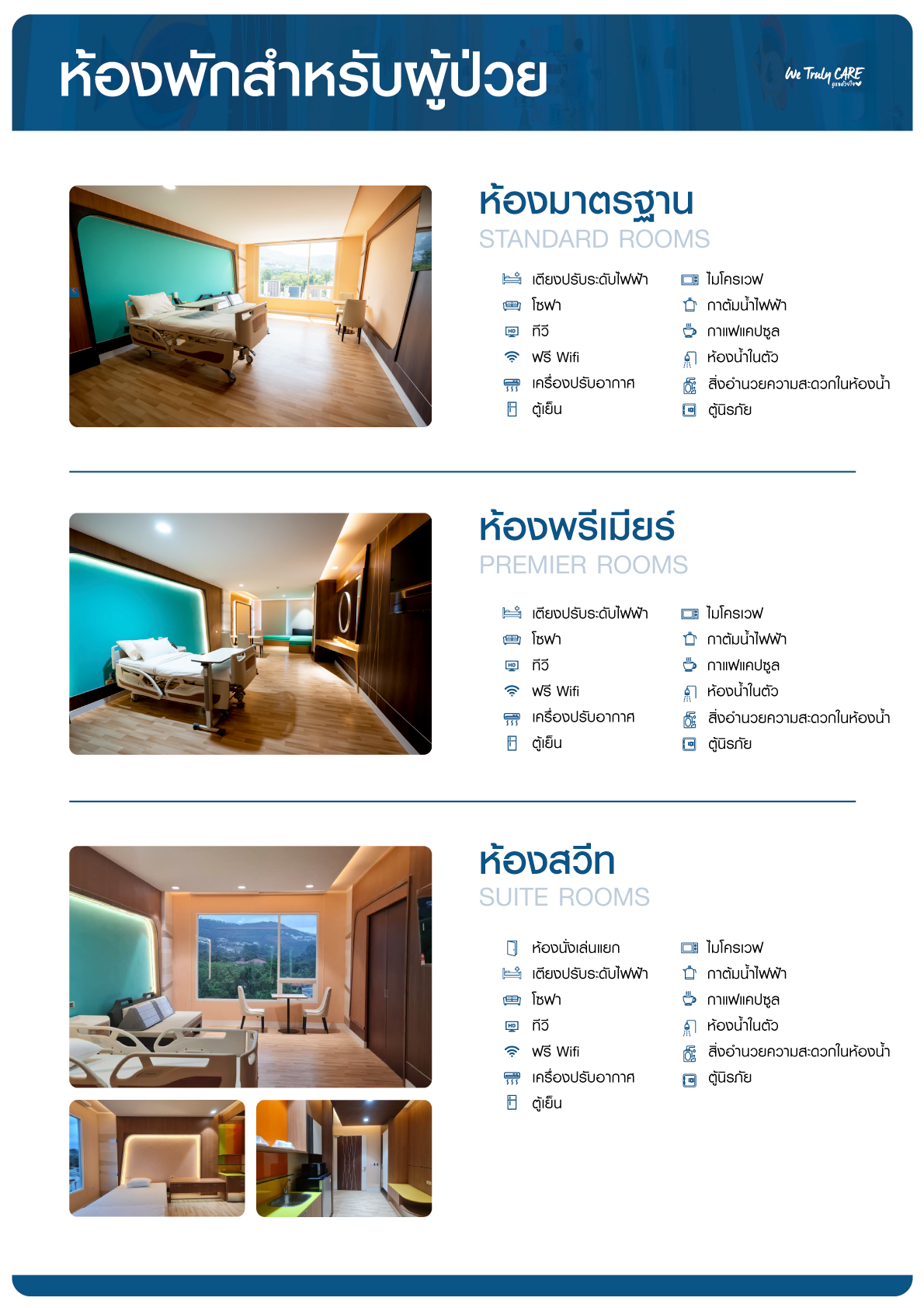 โรงพยาบาลวัฒนแพทย์ สมุยได้ออกแบบห้องพักสำหรับผู้ป่วย เพื่อให้ท่านได้รับความสะดวก และความปลอดภัยสูงสุด พร้อมสิ่งอำนวยความสะดวกครบครัน