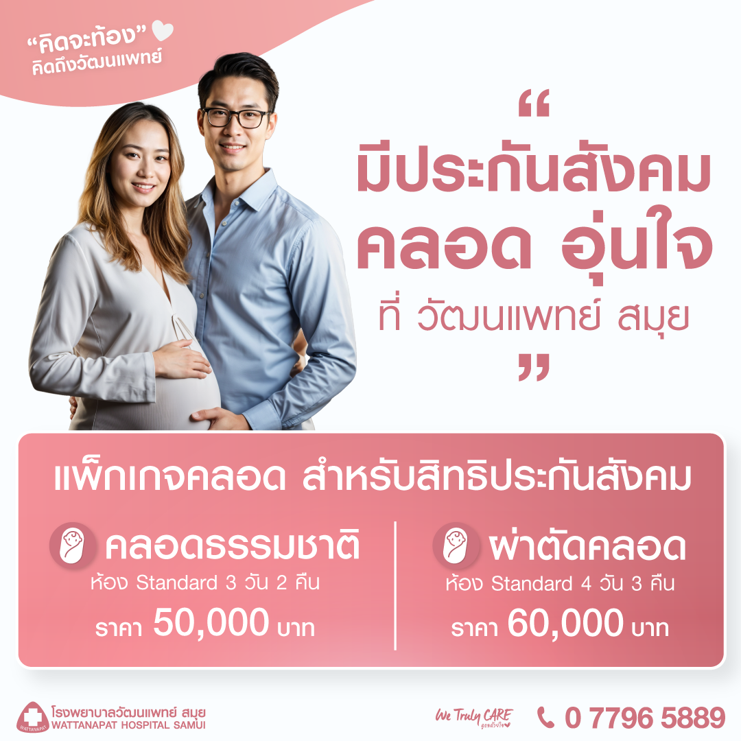 แพ็กเกจคลอดสิทธิประกันสังคม ที่วัฒนแพทย์ สมุย