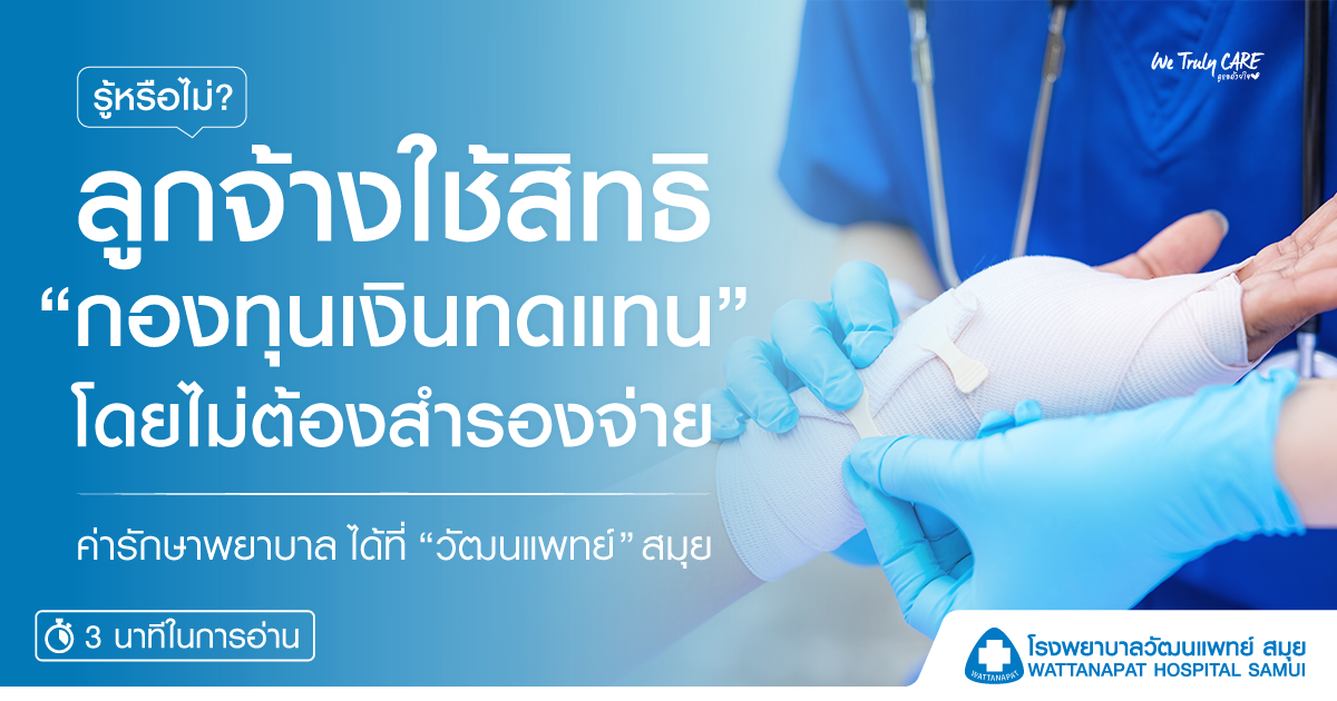 • เข้ารับการรักษาในโรงพยาบาลที่รับรองสิทธิ (เช่น โรงพยาบาลวัฒนแพทย์สมุย) โดยไม่ต้องสำรองจ่าย